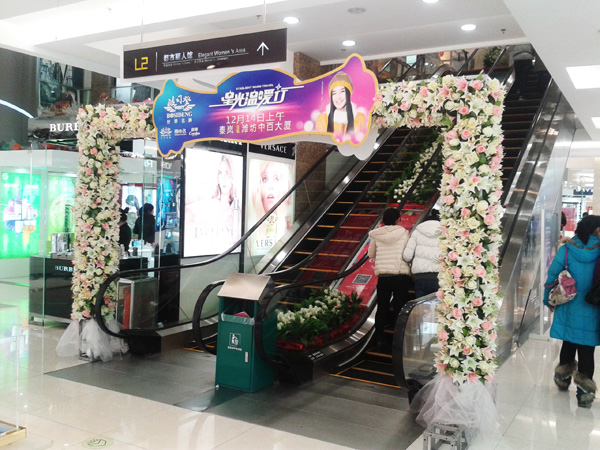 中百大廈電梯口花拱門制作,美觀大方,不死板!